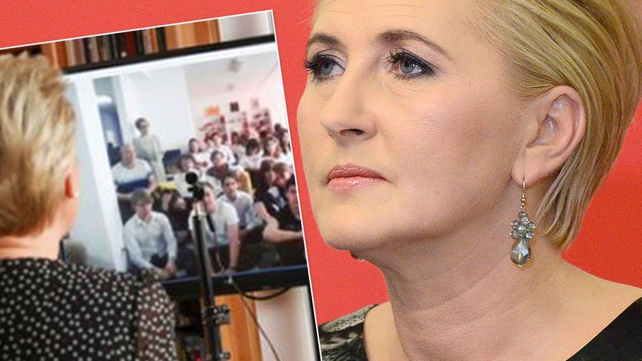 Agata Duda podczas wideokonferencji z uczniami liceum