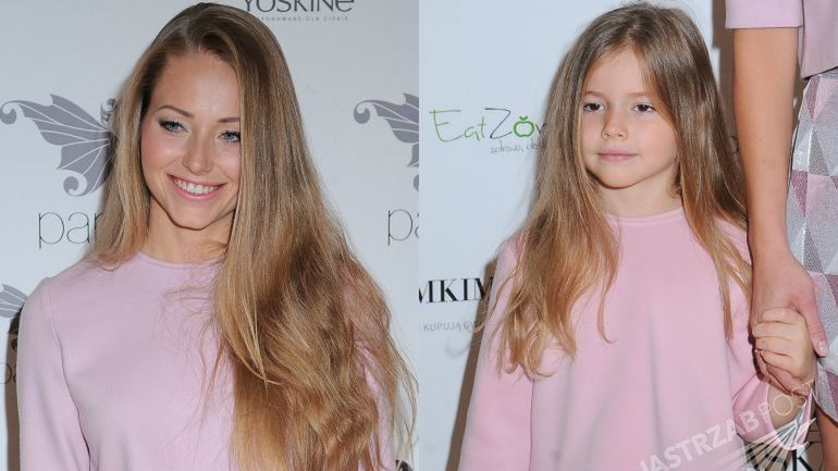 Panie wybrały niemal identyczne stylizacja, różnił je jedynie rozmiar i buty. Zarówno Agata jak i Helenka założyły różowe bluzki i rozkloszowaną różowo-srebrną spódniczkę z koła. Do tego rozpuściły swoje długie, blond włosy. Hela jest bardzo podobna do swojej pięknej mamy, a im starsza tym jeszcze ładniejsza. Chętnie pozowała z mamą na ściance.