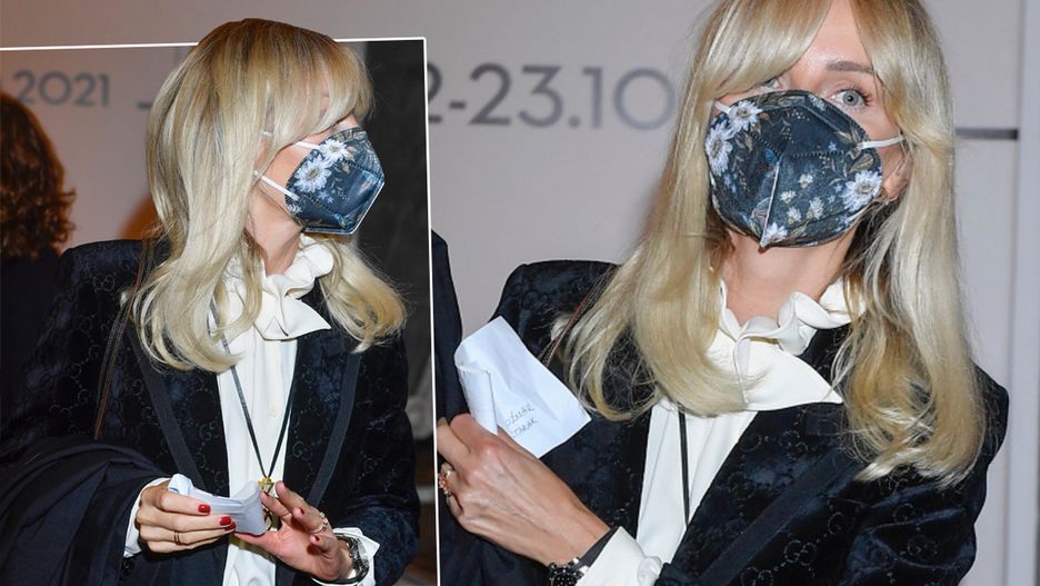 Gwiazda postawiła także na rozpuszczone włosy i czerwony manicure. Nie zapomniała też o bezpieczeństwie i miała na twarzy maseczkę, która również była wykonana z podobnego materiału, co jej kreacja i ozdobiona naszytymi kwiatkami. Trzeba przyznać, że wyglądała zjawiskowo.
