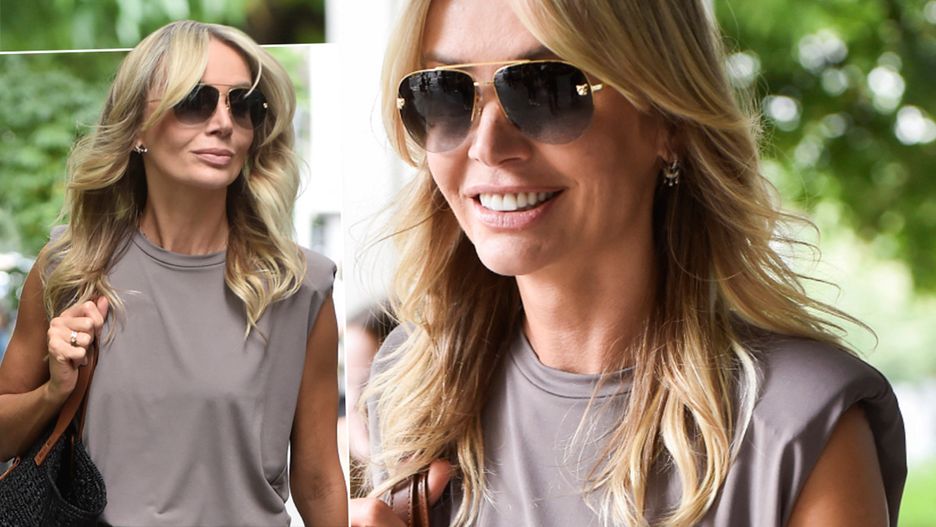 Na uwagę zasługuje oczywiście jej stylizacja. Miała na sobie czarne spodnie ze złotymi wzorami o rozszerzanej nogawce. Dobrała do nich szary T-shirt bez rękawów, za to z poduszkami wszytymi w ramiona. Wszystko uzupełniła wysokimi szpilkami z siateczki, ciemnymi okularami i obszerną torebką w kształcie koszyczka. Więcej zdjęć zobaczycie w naszej galerii. Jak wam się podoba Agnieszka w tej stylizacji?