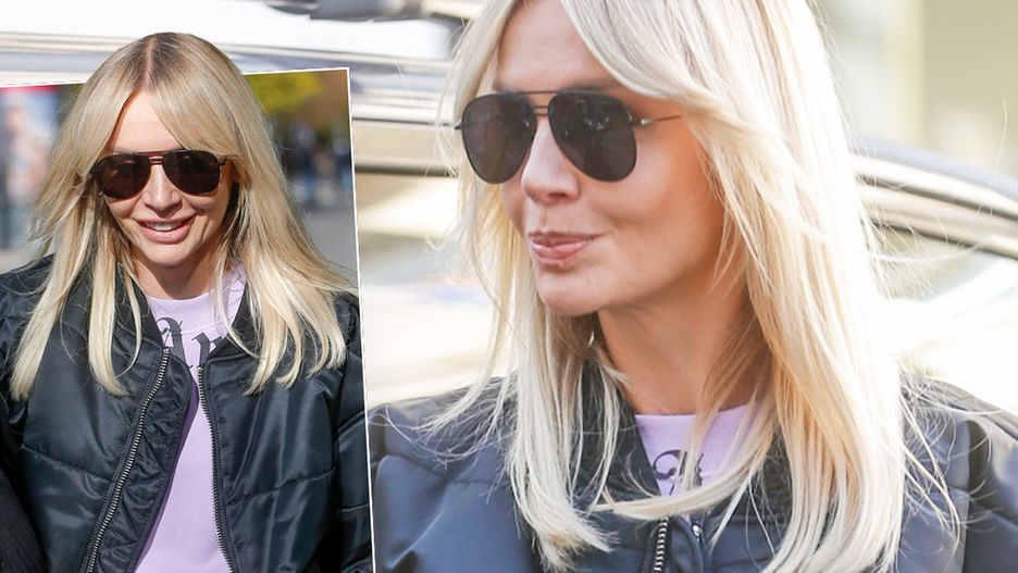 Agnieszka Woźniak-Starak tego dnia sięgnęła po kolejną stylizację. Włożyła wygodny, liliowy dres, który połączyła z wygodnymi butami. Gdy wyszła ze studia, narzuciła na niego ciepłą, ciemną kurtkę. Dobrała przeciwsłoneczne okulary, a także kolorystycznie dopasowaną torebkę. Wyglądała świetnie, o czym przekonacie się zaglądając do galerii.