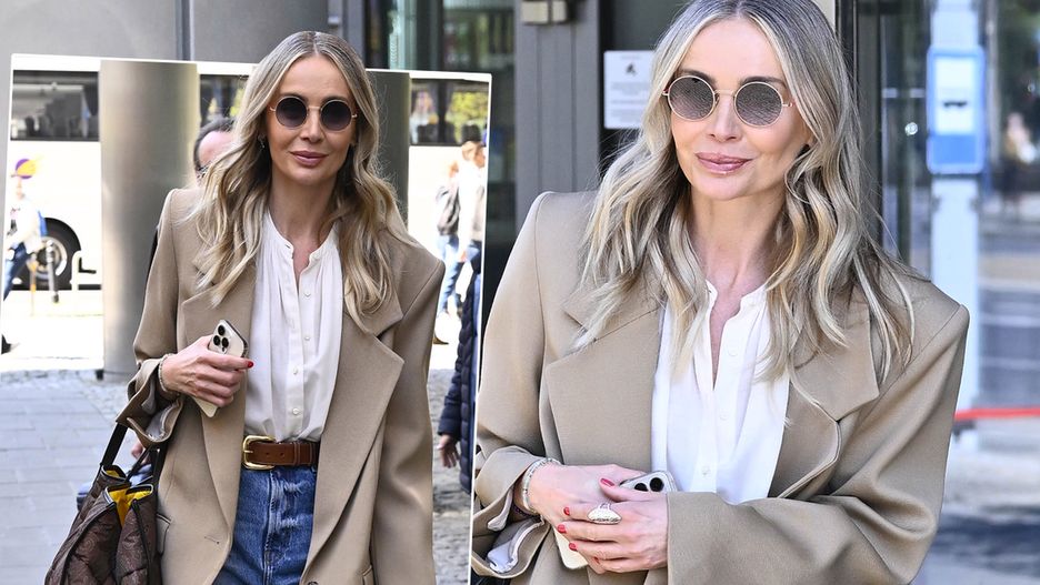 Prowadząca śniadaniówkę miała na sobie najmodniejsze spodnie sezonu, czyli dżinsy z szerokimi nogawkami. Dobrała do nich klasyczną białą bluzkę, beżową marynarkę, i swoje ulubione czarne kowbojki. Oczy zasłoniła ciemnymi okularami, ale nie da się też nie zauważyć sporych rozmiarów brązowej torebki, którą dobrała do stylizacji. Zdjęcia w naszej galerii.