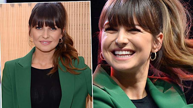 Anna Lewandowska w zielonym garniturze
