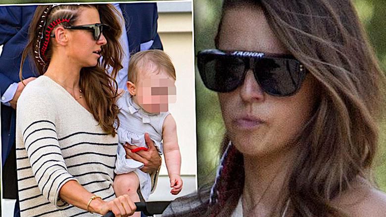Anna Lewandowska na spacerze z Klarą przed meczem Polska-Kolumbia. Na jej twarzy widać zdenerwowanie