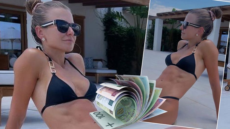 Czarne proste bikini jest warte ponad dwa tysiące złotych, ale dopiero biżuteria, którą ma na sobie trenerka robi wrażenie. Ania postawiła na kolczyki w kształcie kwiatów i bransoletkę do kompletu. Perłowo-złota biżuteria nie należała do najtańszych. Komplet firmy Van Cleef & Arpels to wydatek rzędu 40 tys. złotych.