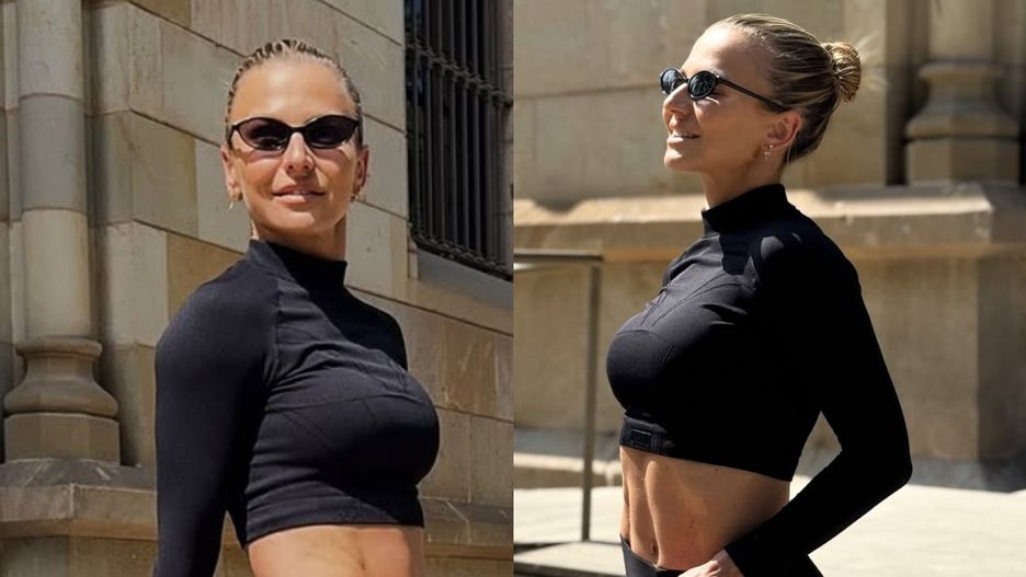 Małżonka Roberta Lewandowskiego wrzuciła na Instagram nowe zdjęcia. Zapozowała w ciekawej stylizacji. Postawiła na czarny, obcisły crop top z długim rękawem i wysokim kołnierzem. Podkreślił on talię i brzuch, nadając stylizacji sportowego charakteru. Do tego dobrała czarne, rozszerzane na dole spodnie z wysokim stanem. Na twarzy gwiazdy znalazły się małe, owalne okulary przeciwsłoneczne w stylu lat 90., bardzo modne i dodające pazura. Stylizację dopełniła luksusowa torebka.