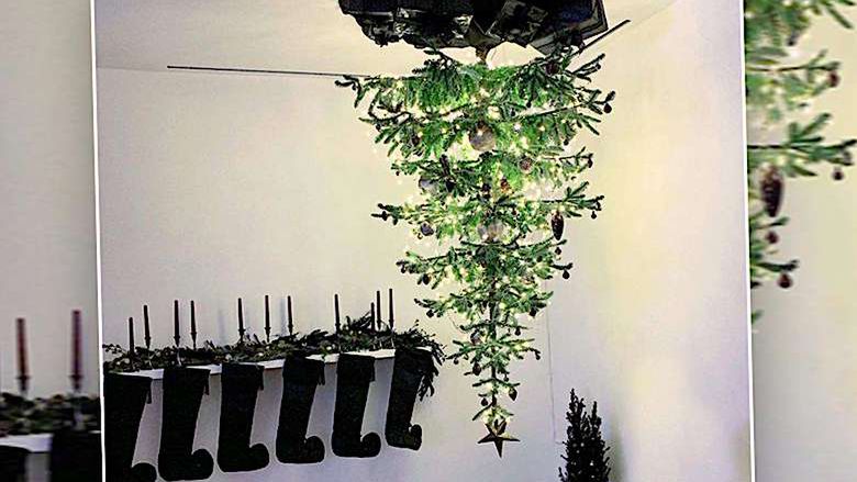 Najdziwniejsza choinka wszech czasów. Gwiazda zawiesiła drzewko na suficie
