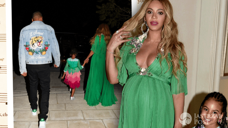 Gwiazda miała na sobie zieloną suknię Gucci z kwiatowym motywem przy głębokim dekolcie, która podkreślała wszystkie ciążowe krągłości Queen B. Piosenkarka dobrała do niej biżuterię Kimberly McDonald i złote szpilki Alaia. Blue Ivy miała sukieneczkę dopasowana do sukni mamy, z kilkoma warstawami kolorowych falban.