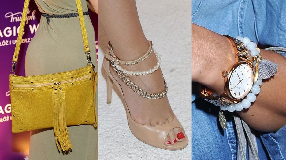 Agnieszka Więdłocha do których szortów założyła wysokie buty, Klaudia Halejcio postawiła na bogato zdobione buty i bardzo błyszczącą biżuterię, a Izabela Zwierzyńska i Lidia Kopania wybrały szpilki w tym samym stylu. Zobaczcie zbliżenia na detale stylizacji!