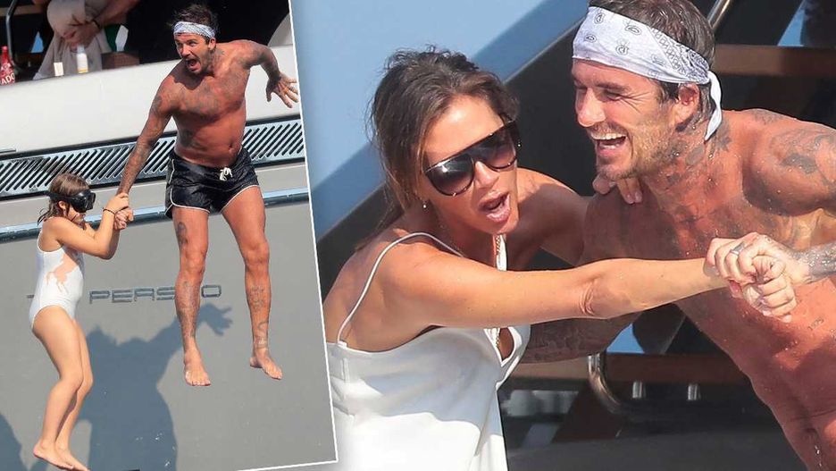 Brytyjskie gwiazdy zostały przyłapane na wodnych szaleństwach, którym głównie oddawał się David i dzieci. Były piłkarz pływał razem z Harper, Cruzem i Romeo. W pewnym momencie postanowił spłatać figla swojej pięknej małżonce i po mini-sesji zdjęciowej wyrzucić ją za burtę.