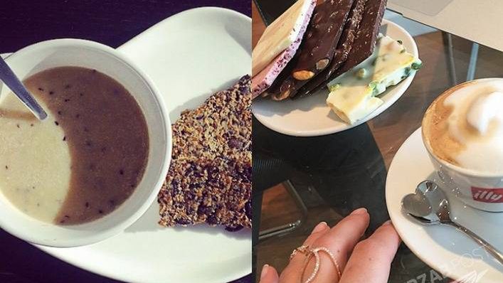 Sara Mannei nie liczy każdej kalorii. Jej śniadanie z pewnością przypadnie do gustu łasuchom. Różnokolorowe czekolady, do tego kawa i Sara jest naładowana energią.