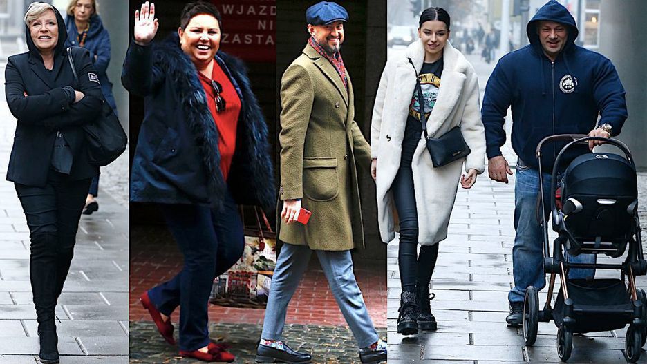Gwiazdy wychodzą z "Dzień Dobry TVN": Krystyna Janda, Robert Burneika z partnerką i córką, Dorota Wellman