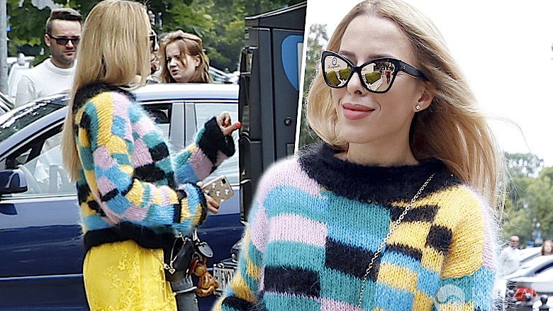 Trenerka miała na sobie bardzo kolorowy zestaw CHAOS by Marta Boliglova. Kolorowy sweterek doskonale komponował się z żółtą, koronkową spódnicą, która z kolei pięknie podkreślała jej opaleniznę. Ewa Chodakowska miała na sobie trapery Louis Vuitton ze skóry cielęcej za ok. 5 tysięcy złotych.