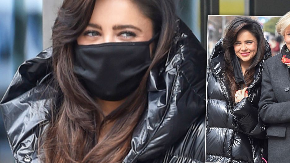 Panie tego dnia postawiły na ciemne stylizacje. Gabi sięgnęła po pikowaną, czarną kurtkę z kapturem, którą połączyła z ciemnymi, sznurowanymi butami i małą, zgrabną torebką. Z kolei jej mama włożyła ciemnoszary płaszcz zapinany na guziki, do którego dopasowała kolorową apaszkę. Wybrała też ciemne, skórzane kozaki.