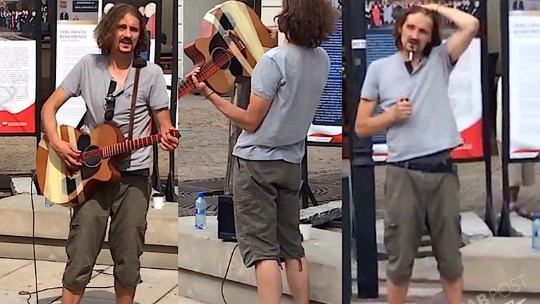 Czytelniczka Jastrząb Post spotkała Gienka Loskę grającego na posklejanej taśmą gitarze i śpiewającego na ulicy przed kościołem w Warszawie. Poniżej relacja jaką dołączyła w wiadomości z filmem przesłanej do naszej redakcji: