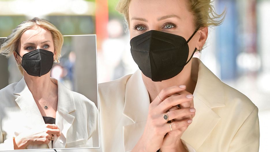 Póki co jednak możemy oglądać ją w śniadaniówce, a kiedy wyjdzie ze studia podziwiać jej stylizacje. W poniedziałek było dosyć wietrznie, więc Agnieszka dzielnie walczyła z podmuchami. Miała na sobie jasną marynarkę oversize, która w modzie damskiej króluje już od kilku sezonów, a stylizacje z jej udziałem są najlepszym dowodem na to, że przeskalowane ubrania mogą wyglądać naprawdę kobieco, czego dowodem jest look Woźniak-Starak. Okrycie połączyła z jasnoniebieskimi spodniami w kant z delikatnym przetarcie na nodze.