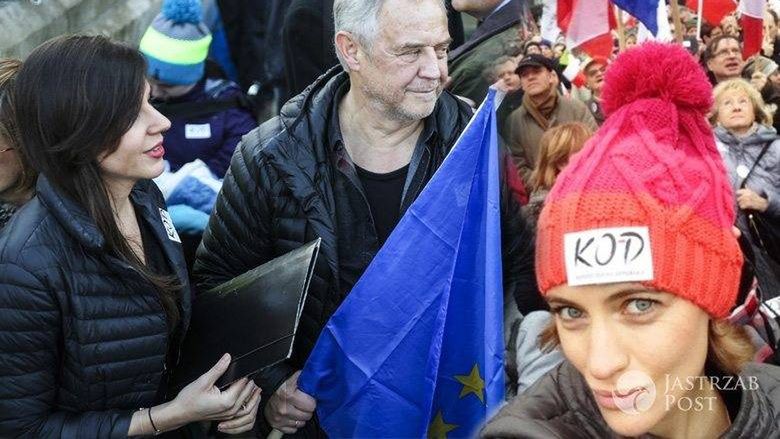 Gwiazdy na manifestacjach w obronie demokracji: Tomasz Lis, Marek Kondrat z żoną, Kuba Wojewódzki