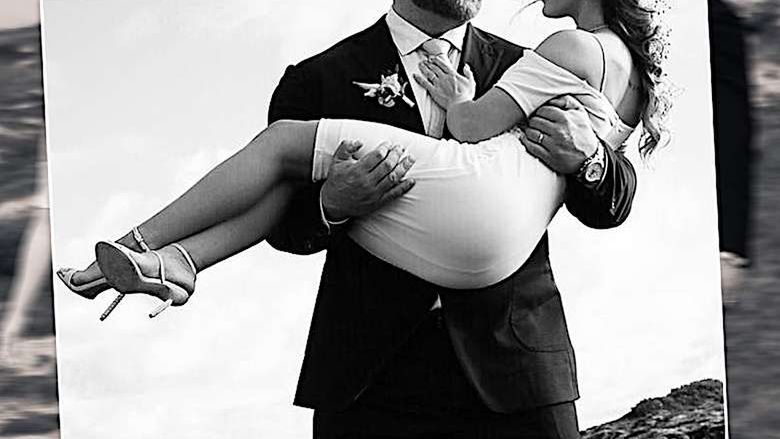 Na załączonej fotografii możemy podziwiać, jak Hafthor czule trzyma na rękach swoją śliczną małżonkę w dość skromnej sukni ślubnej.
