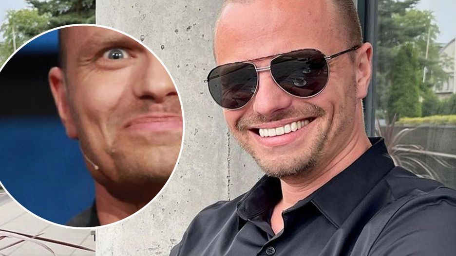 Marcin Hakiel w objęciach pięknej kobiety. Jego mina mówi wszystko