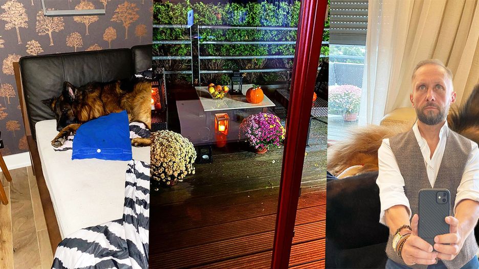 Na jednym z nagrań, które dziennikarz udostępnił na swoim profilu na Instagramie, możemy zobaczyć fragment salonu. W centralnej części pomieszczenia ustawiona jest jasna, skórzana kanapa. Za nią stoi szara komoda, którą ozdabiają bibeloty.