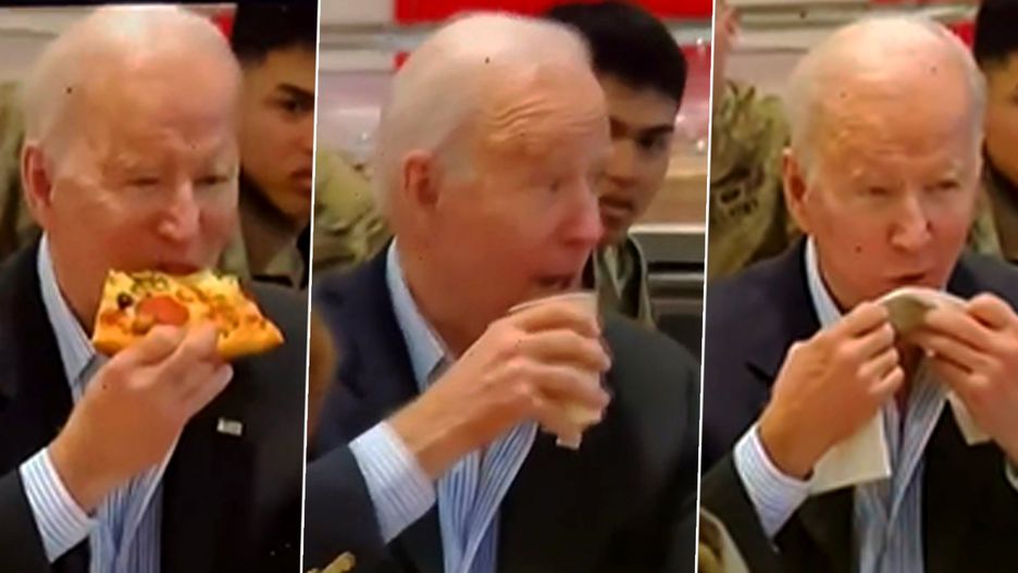 Joe Biden ze smakiem pałaszuje pizzę