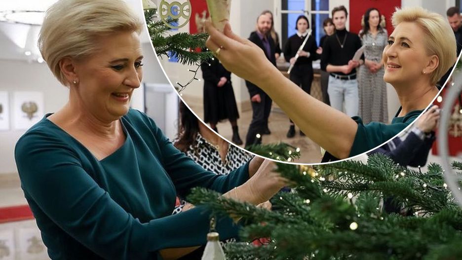 Agata Duda ubrała choinkę w Pałacu Prezydenckim. Na imponującym drzewku zawisły wyjątkowe ozodoby. Kilkumetrowy okaz robi wrażenie