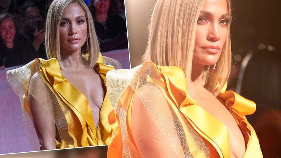 Jennifer Lopez pojawiła się w żółtej, mocno powycinanej kreacji. Błyszczący materiał, miejscami był transparentny, a połysk powodował wrażenie złota. Głęboki V-dekolt i odsłonięte nogi, pokazywały boskie ciało gwiazdy. Nic nie wskazuje na metrykę piosenkarki. Wygląda jak dwudziestolatka. Prosta fryzura, klasyczny bob, w kolorze blond oraz świetlisty, ale wyrazisty makijaż dopełniały stylizacji. Nie można było od niej oderwać wzroku. No i ta torebka! J.Lo zadbała o każdy szczegół – w ręku trzymała plik banknotów dolarowych, taki właśnie kształt miała jej torebeczka. Bardzo oryginalny pomysł.