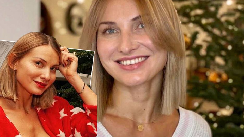 Joanna Moro kusi przy choince. To nie świąteczne drzewko jest tu na pierwszym planie