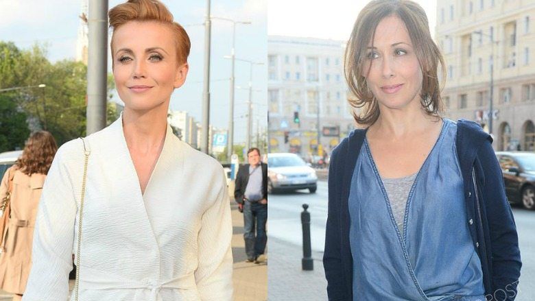 Oczywiście nie mogło zabraknąć Jolanty Fraszyńskiej i Katarzyny Zielińskiej. Jolanta postawiła na niebieski kombinezon, a Kasia na białą sukienkę wiązaną w pasie. Do tego dobrała ciekawe złote szpilki z owalnymi wycięciami oraz beżowy trencz. Całość zwieńczyła białą torebką na złotym pasku.