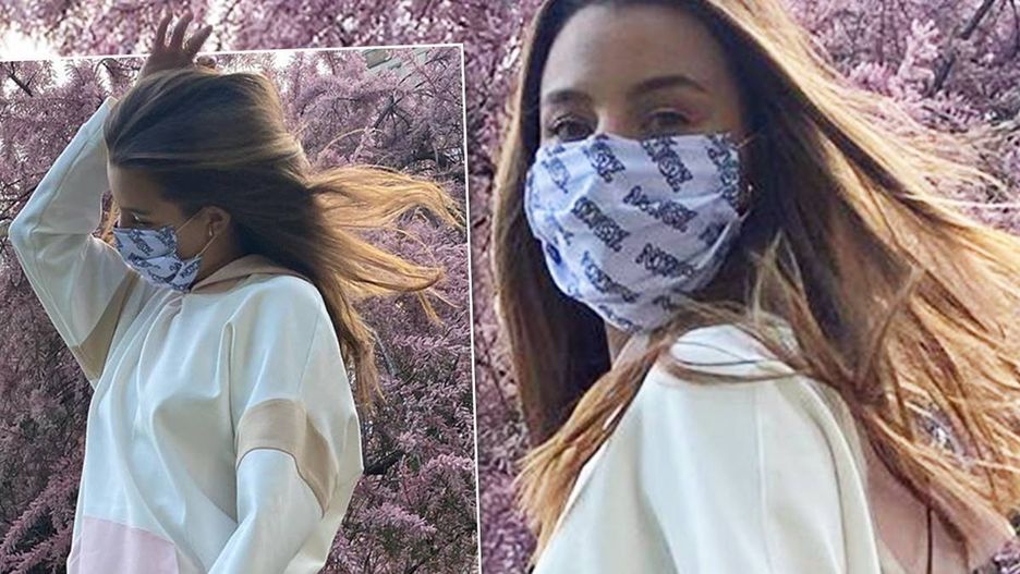 Julia Wieniawa kolejną ciekawą stylizację zaprezentowała w czwartkowe popołudnie. Na chwilę wyszła z mieszkania i zapozowała do kilku zdjęć, które opublikowała w sieci. Ubrała się w jasny dres z różowymi i brązowymi akcentami. Dobrała do niego biało-różowe półbuty Ryłko. Aktorka rozpuściła włosy, a twarz przesłoniła maseczką ochronną.