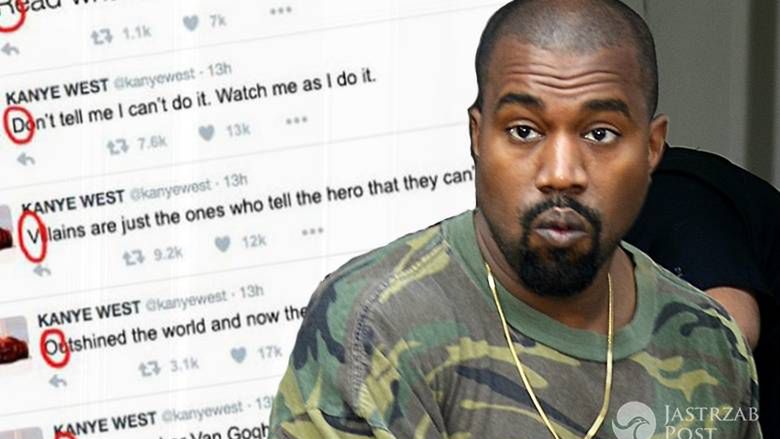 Okazuje się, że to jeszcze nie wszystko. Ostatnio Kanye za pośrednictwem Twittera wystosował zaszyfrowaną wiadomość! Jeden z fanów Westa zamieścił w sieci zdjęcie ostatnich publikacji idola, gdzie zaznaczył, że pierwsze litery wpisów układają się w zaszyfrowaną wiadomość... "I am Lord Voldemort", czyli "Jestem Lordem Voldemortem".