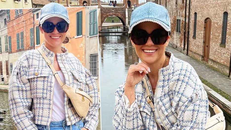 Ukochana towarzyszy świeżo upieczonemu dziadkowi w pierwszej wizycie u malutkiej dziewczynki. Przy okazji Kasia korzysta z pięknej pogody i zwiedza Włochy. Nie obyło się oczywiście bez zdjęć. Pokazała się fanom w najmodniejszej stylizacji sezonu. Do krótkiej wełnianej kurtki dobrała dżinsowe spodnie typu flare i biały T-shirt. Wszystko uzupełniła wysokimi butami, niewielką torebką, czapeczką z daszkiem i ciemnymi okularami.