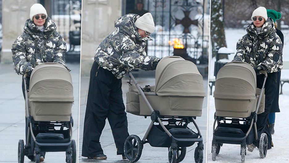Dla świeżo upieczonej mamy zimowa aura nie była żadną przeszkodą. Ubrana w ciepłą puchówkę, czarne spodnie i białą czapkę z synkiem w wózku własnego projektu, nie zważając na mróz, rozkoszowała się przechadzką.