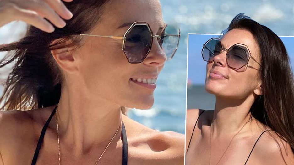 Kasia Glinka pozuje na plaży w obiektywie synka. Kostium podkreślił figurę 44-letniej gwiazdy