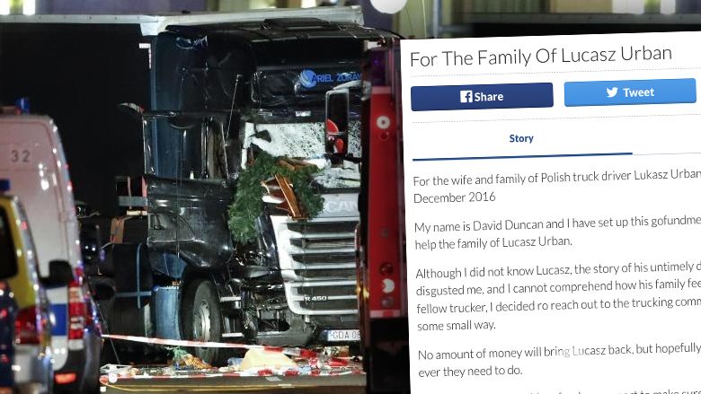 Mężczyzna stał się bohaterem, a jego historia poruszyła jego kolegów po fachu. Niestety czekając na rozładunek, pojawił się w niewłaściwym miejscu o niewłaściwym czasie i został wykorzystany do ataku terrorystycznego. Brytyjski kierowca ciężarówek David Duncan nie mógł poradzić sobie z tą historią. Postanowił, że będzie solidarny z Polakiem i wesprze jego rodzinę. Zorganizował zbiórkę pieniędzy. Celem jest zgromadzenie 10 tysięcy funtów, czyli ponad 50 tysięcy złotych. W ciągu 20 godzin zebrano już połowę tej kwoty.