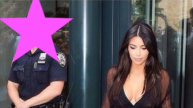 Kim Kardashian, jej niecodzienne i więcej odkrywające niż okrywające stroje, nigdy nieprzestaną zwracać uwagi nie tylko płci przeciwnej. To zdjęcie zostało zrobione przypadkiem, ale najważniejsza nie jest na nim Kim, lecz mistrz drugiego planu - ochraniający obiekt policjant.