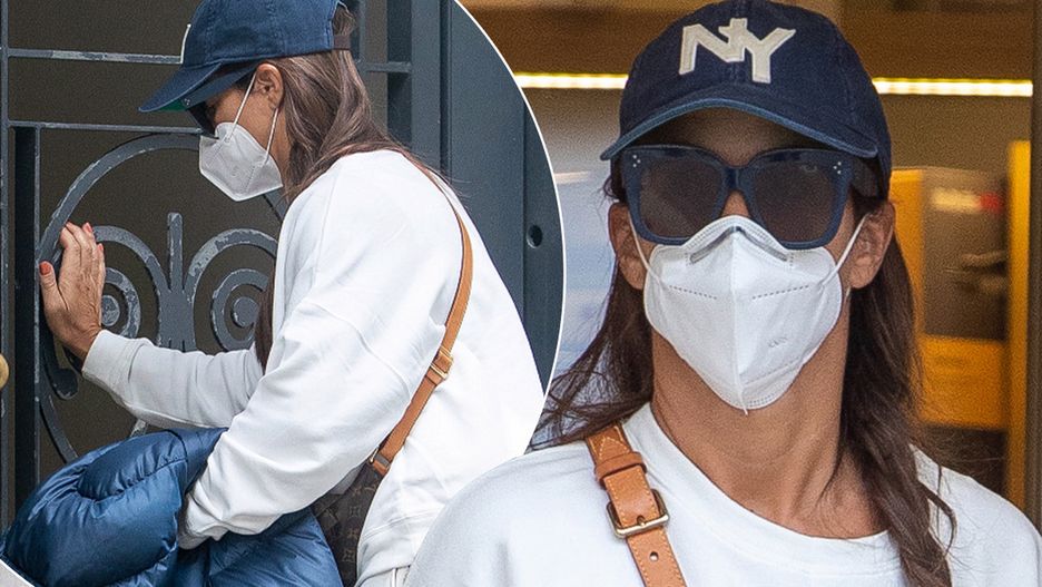 Gwiazda wskoczyła w ciepły biały dres, do którego dobrała zamszowe botki na obcasie i granatową czapeczkę z daszkiem. Miała też okulary przeciwsłoneczne i niosła ze sobą ciepłą kurtkę.
