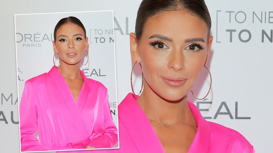 Celebrytka postawiła na mocny kolor magenty. Nie tylko robi mocne wrażenie, ale to kolor roku 2023 według Pantone. Aktorka doskonale wie, co w modzie piszczy. Sukienka z zabudowaną górą i długimi rękawami odsłaniała szczupłe nogi. Klaudia dobrała do niej pantofelki z piórami, także w kolorze magenty. Halejcio gładko zaczesała włosy, a stylizację uzupełniła kolczykami-kołami oraz pierścionkiem zaręczynowym i jeszcze jednym, który wyjątkowo błyszczał.