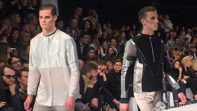 Pomimo dość mocnego makijażu, który mieli na sobie faceci i kobiety, widać było, że modele pewnie czują się na wybiegu. Zaprezentowali ubrania z futurystycznej kolekcji, którą charakteryzowały mocne, geometryczne linie, nowoczesne materiały i oszczędna kolorystyka zbudowana wokół różnych odcieni bieli, beżu i czerni.