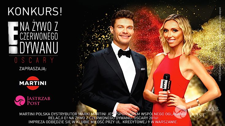 Chcesz obejrzeć kreacje gwiazd w relacji na żywo prosto z Los Angeles? A do tego spędzić wieczór w towarzystwie polskich gwiazd, dobrej muzyki, pysznego jedzenia i najlepszego alkoholu? Razem z E! Entertainment, Jastrząb Post i Martini możesz przenieść się na czerwony dywan w Hollywood! Wystarczy, że masz ukończone 18 lat i weźmiesz udział w naszym konkursie.
