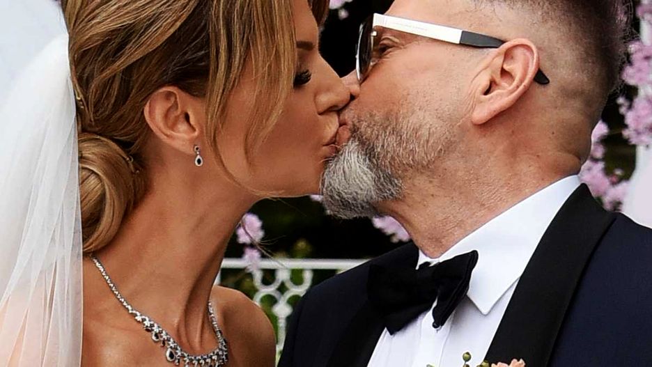 Krzysztof Rutkowski rocznicę ślubu uczcił z rozmachem. Jego żona wyglądała jak panna młoda. Co za suknia