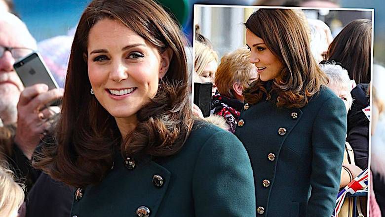 Ciężarna księżna Kate podkreśliła swój duży brzuch drogą stylizacją! Pod tym płaszczem nic się nie ukryło!