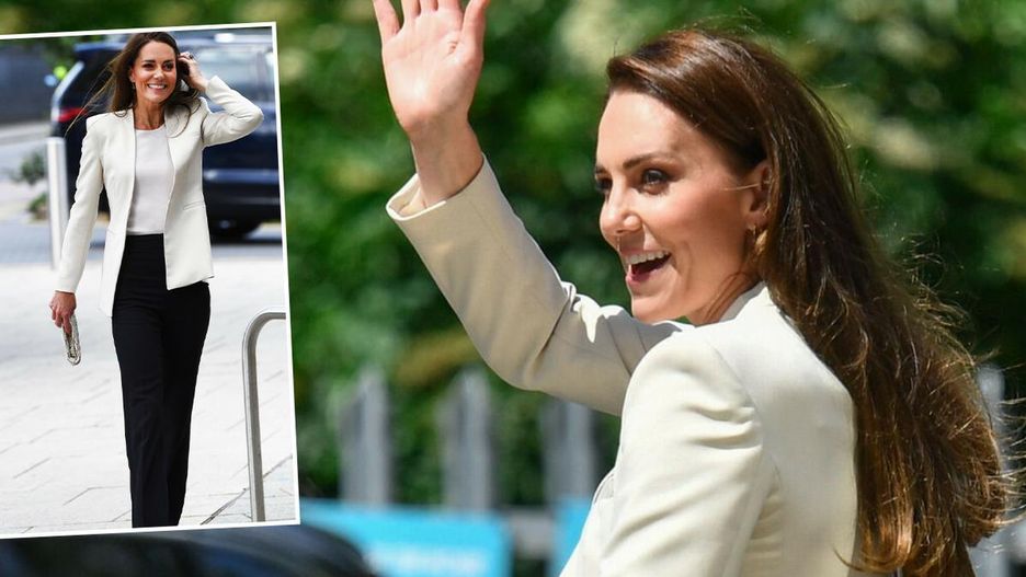 Kate pojawiła się na spotkaniu w formalnym stroju. Miała na sobie białą marynarkę, koszulkę w podobnym odcieniu i wąskie, czarne spodnie. Jej look uzupełniły kremowa torebka i buty na obcasie. Elegancka klasyka podkreślała zgrabną figurę członkini dynastii Windsorów. Zdjęcia najnowszej kreacji żony Williama zobaczycie w galerii pod tekstem.