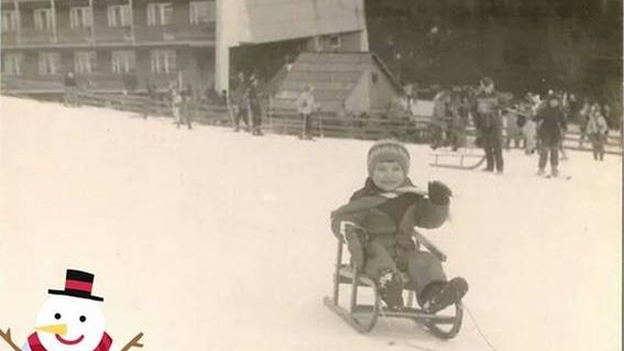 Gwiazda pokazała fotkę, zapewni zrobioną przez jej rodziców, gdy ta miała kilka latek i zjeżdżała na sankach z górki.