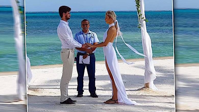 Zapytałem moją narzeczoną, jakie jest jej największe marzenie. Powiedziała: "Wziąć ślub na prywatnej wyspie na Karaibach". Dwa dni później możecie do niej mówić Pani Oleksa - napisał mąż Prymy pod zdjęciem.