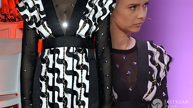 Artystka wystąpiła w bardzo modnej stylizacji. Wybrała czarno-białą kreację zdobioną srebrnymi dżetami, ciekawą biżuterię i modne w tym sezonie białe buty, które chętnie lansuje Joanna Horodyńska.