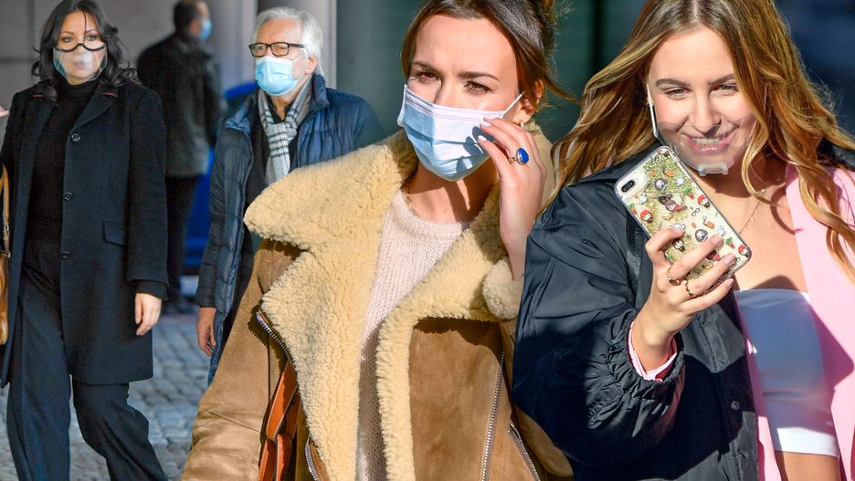 Magda po wyjściu ze studia miała zakryte usta i nos maseczką z przezroczystego materiału. Prosty myk pozwolił jej zaprezentować makijaż w pełnej okazałości, a przy tym nie łamać przepisów prawa, które obowiązują od połowy października w całym kraju.