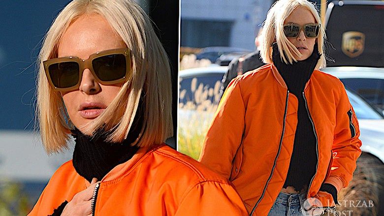 Tym razem paparazzi przyłapali gwiazdę jak spacerowała po Warszawie w bardzo oryginalnej stylizacji: modelka miała na sobie jasne, szerokie dżinsy z wysokim stanem, czarny sweter z golfem odsłaniający brzuch, białe trampki i jaskrawopomarańczową kurtkę bomberkę. Wyglądała zupełnie nie jak Barbie, więc jeśli o to chodziło - gratulujemy!