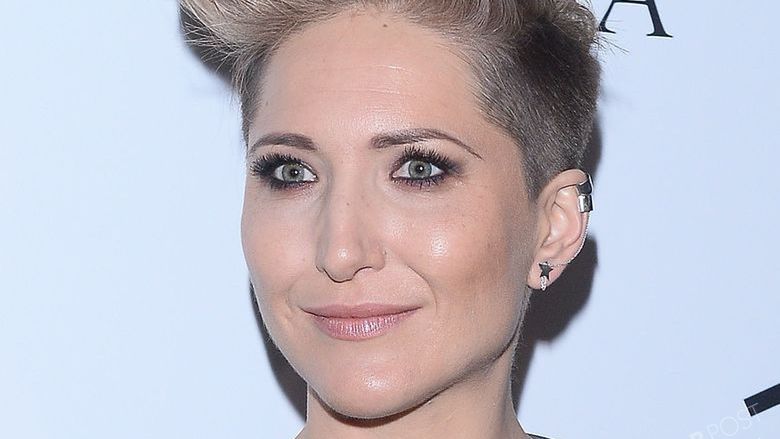 Piosenkarka tego wieczoru pokazała się w krótkiej sukience eksponującej jej zgrabną figurę. Na górę ubrała ażurowy płaszcz w kolorze khaki. Doskonałym uzupełnieniem stylizacji była metaliczna kopertówka i buty z metalowymi blaszkami. Zaczesana do góry grzywka podkreśliła nowoczesny charakter zestawu.