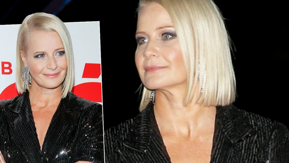 Małgorzata Kożuchowska tym razem sięgnęła po cekinowy komplet. Składał się on z marynarki z głębokim dekoltem, a także dopasowanych spodni z ciekawymi nogawkami. Chociaż w takim przypadku łatwo przekroczyć cienką granicę i przedobrzyć, a przez to zaliczyć wpadkę, wyszło pięknie.